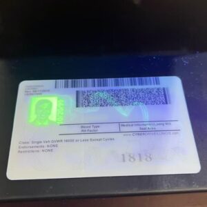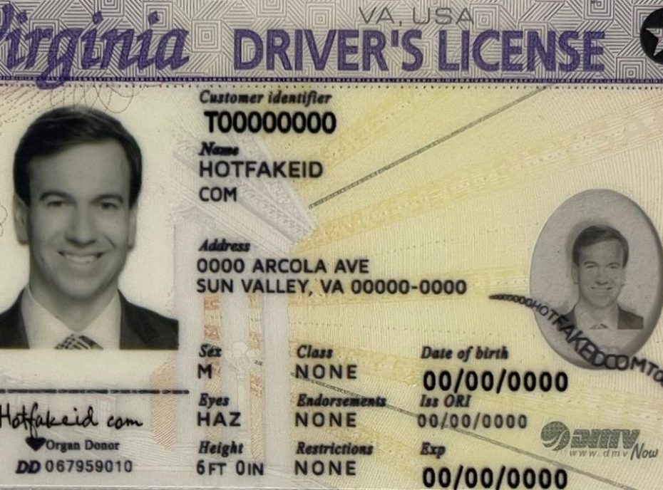 Scannable Virginia identification uses thin sheets of polymer material to absorb UV hardening and low-viscosity inks.
